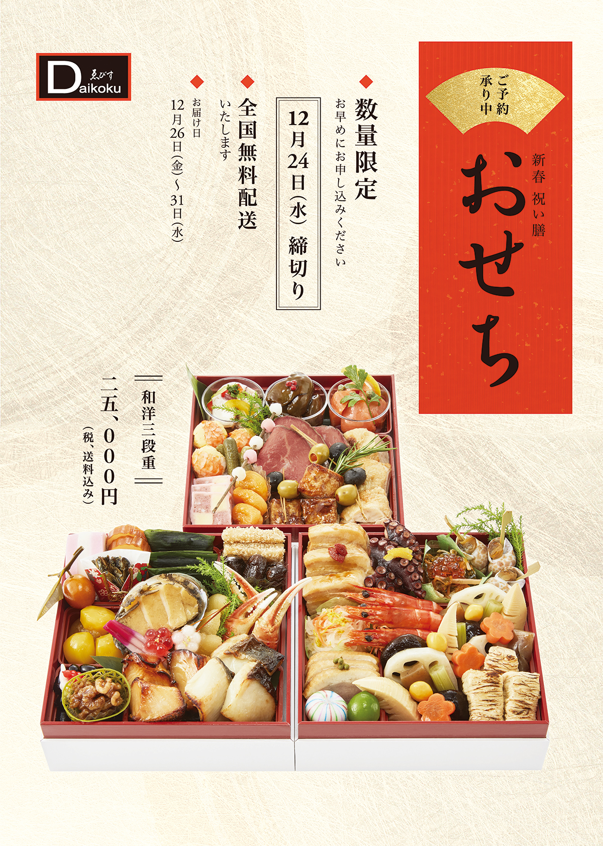 マコトのおせち料理は、お電話、またはメールでご注文いただけます。